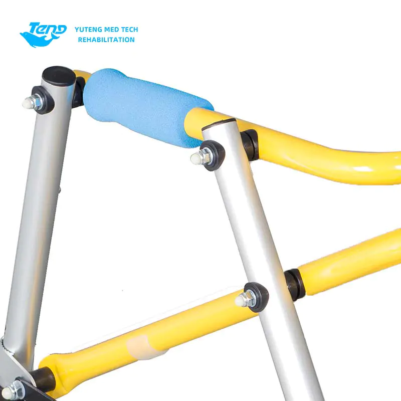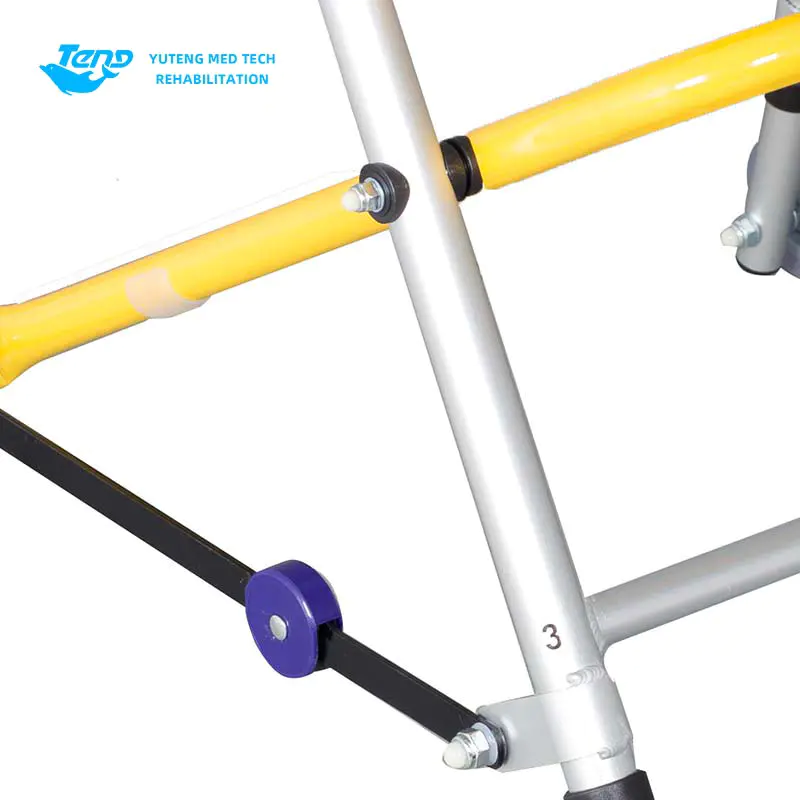 Продукты Yuteng Medical Series: регулируемый алюминиевый сплав Walker-это надежная инвалидная коляска с железом, предназначенная для повышения долговечности. Основная рама: изготовлен из трубки алюминиевого сплава толщиной 25,4*1,2, которую можно сложить вперед и назад, с окисленной яркой трубкой для порубки на поверхности, окисленной желтой U-образной трубкой, синей ручкой из пены, регулируемой 5-луночной трубкой и 3-дюймовыми колесами на передней и задней трубках ног, 5-луночной трубкой и 3-дюймовыми колесами на передней и задней трубках для ног, 5-луночно